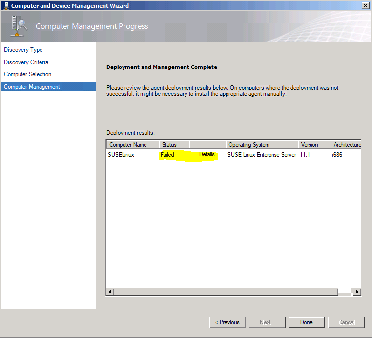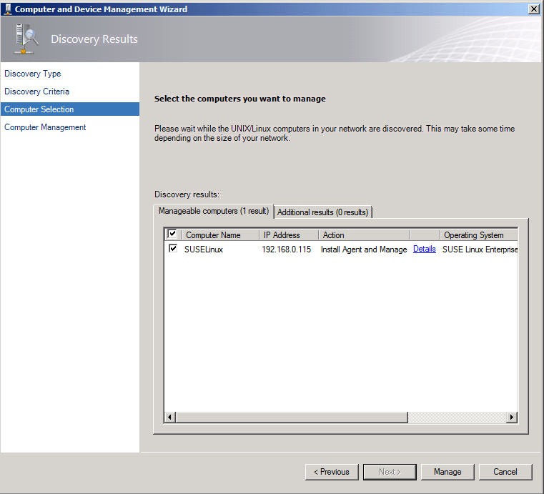 In discovery scope I entered the LINUX computer name SUSELinux…