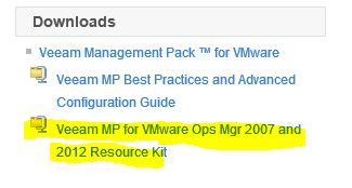 If you login into the Veeam account you also find a Veeam MP Resource Kit. This kit contains documents and necessary overrides. I recommend to download this Resource Kit also.