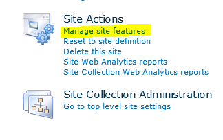Select Manage site features…