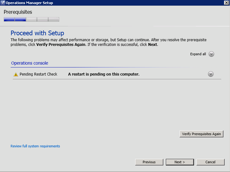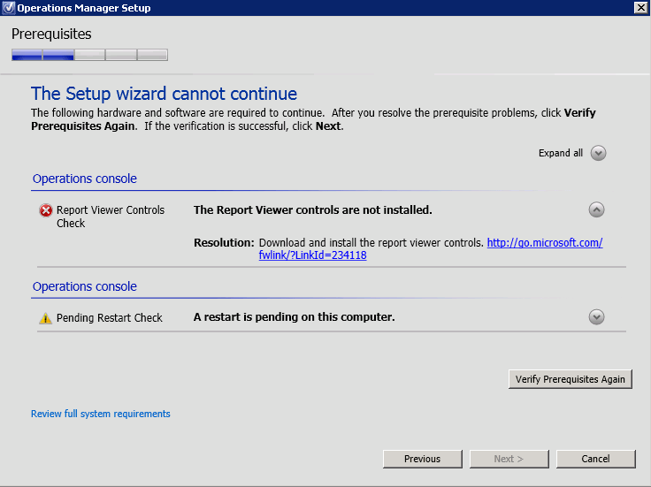 Run the Prerequisites Check again and everything should be o.k….