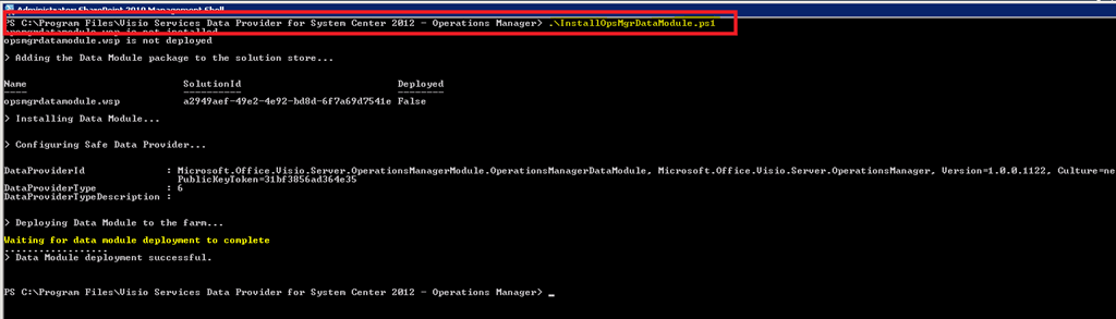 Open the SharePoint Management Shell and change into the directory where you extracted the files from above and run the InstallOpsMgrDataModule.ps1 as shown in the Screenshot…