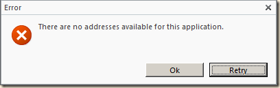Problem: There are no addresses available for this application