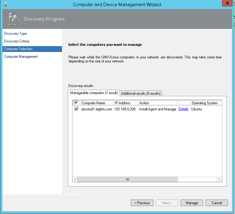 Well, after a long time I changed the password for the account to discover the Ubuntu server and then the discovery ran without an issue….