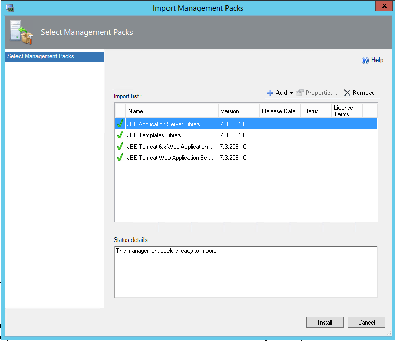 Next, we are going to install the management packs for Tomcat 6 monitoring. Download the MP to C:\MP and extracted the MSI file. It will look like this…