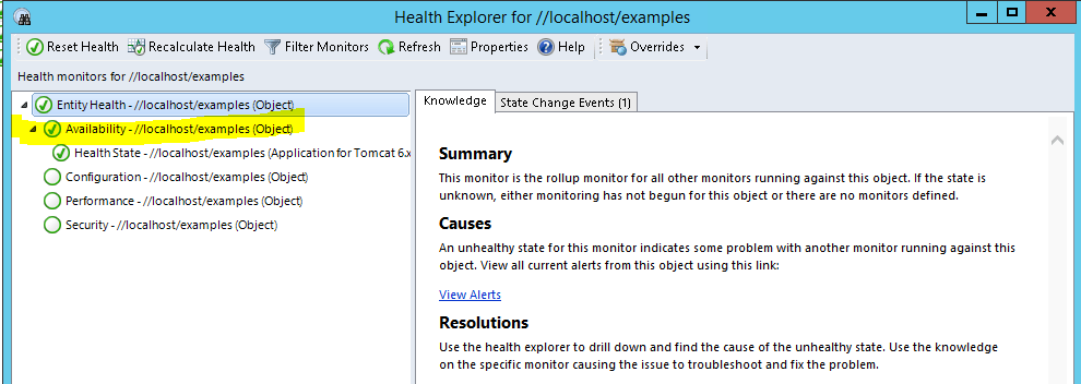 If you take a look at the HealthExplorer of an application, you will notice that only the Availability node has a monitor (this will change when we import the Java APM management pack).