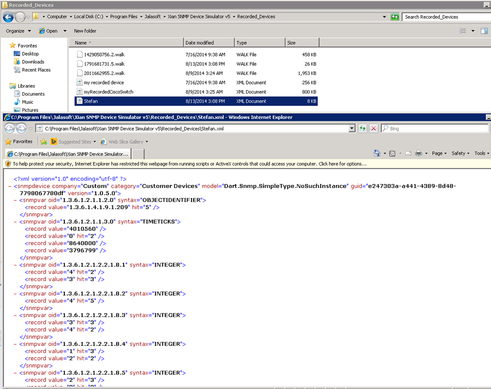 One very cool feature is the Device Recorder. You basically connect to any SNMP physical / virtual network device and capture data from real network devices and then play the recoding with the SNMP Device Simulator. This can be done in 5 easy steps which is very good explained in this PDF. The fantastic thing is, that you are able to replay the recording as many time as you want. This is a great help for analyzing and reproducing specific behaviors of network devices. The recording data is stored in XML files which can be easily viewed…