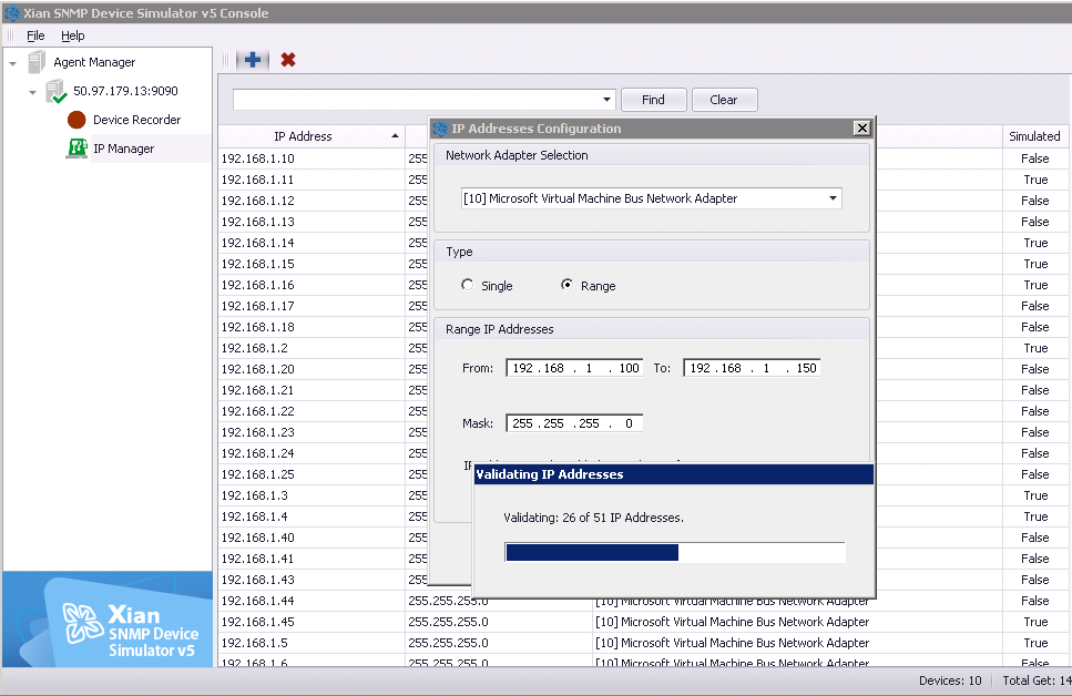 Using IP Manager let’s you define just single IP addresses or a range of IP addresses to add in one shot for simulating SNMP devices…
