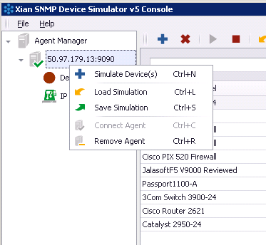 The console let’s you not only manage each simulated device but also connect to other agents and save and load the configured network devices…