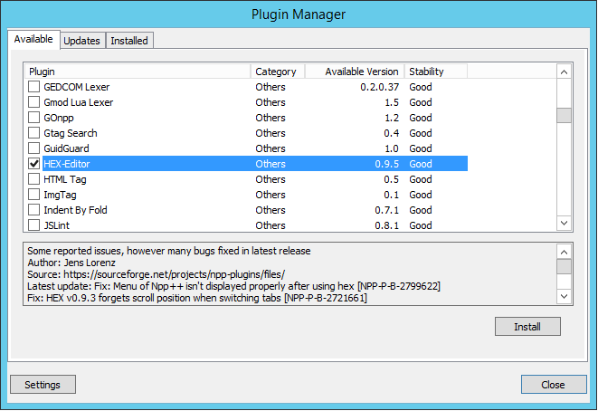 Luckily we manage the runbooks in TFS so I made a copy of both runbooks and looked at the files in a HEX editor. Why? Well, if you think about it, runbooks are just PowerShell files and PowerShell files are just plain text files with a “PS1” suffix. To see if there is a difference we need to analyze the text file in a HEX editor “to see behind the curtain”. A possible choice since we use Notepad++ a lot, is to install the HEX Editor plugin for Notepad++…