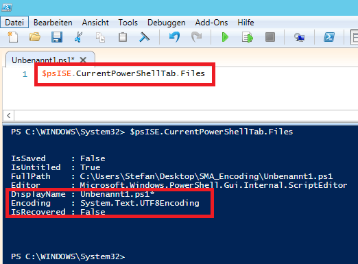 How can you avoid running into this issue? Well as I mentioned you need to have saved your scripts as UTF-8 encoded. If you use PowerShell ISE in version 3 and higher ALL your scripts are natively saved as UTF-8. In this screenshot I just checked my PowerShell ISE on a Windows 8.1…
