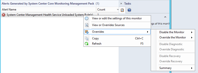View or Overrides Sources shows you the source generating the alert, from here you are able to override or disable the monitor…