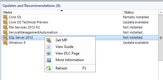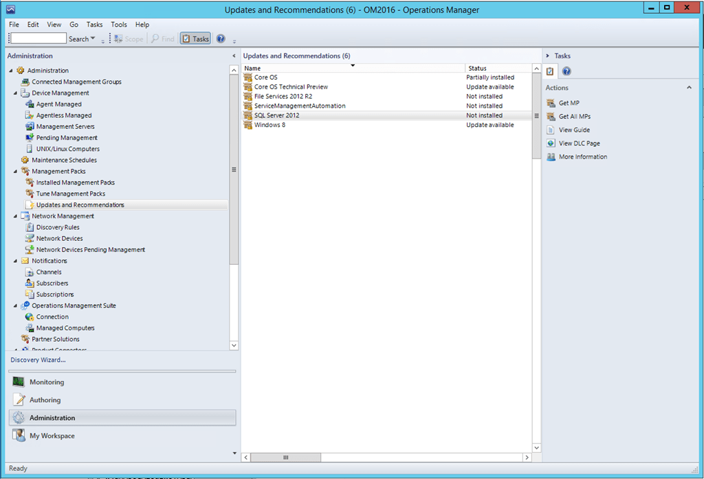 If you right click one of the entries, it gives you some options like Get MP, this will launch the MP import wizard and install the selected MP. View Guide will download the management pack guide for the selected MP. The View DLC Page opens the download catalog (DLC) page of that specific MP….