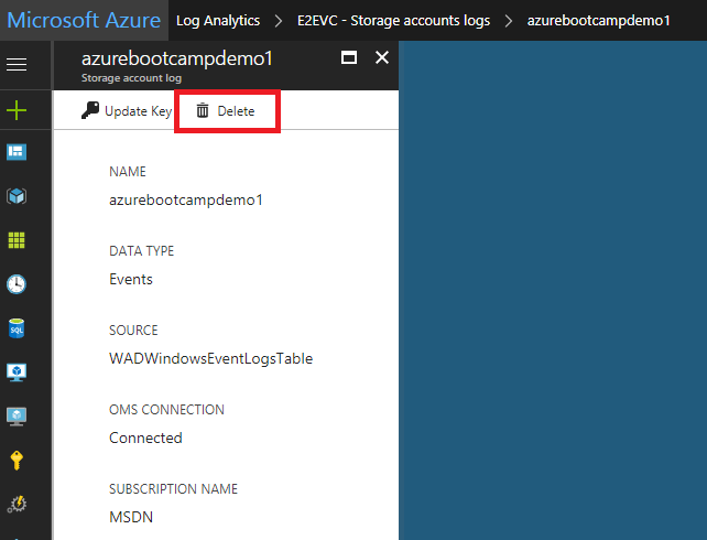…to remove the storage accounts from Log Analytics you simply select the storage account in the Azure portal and click Delete…